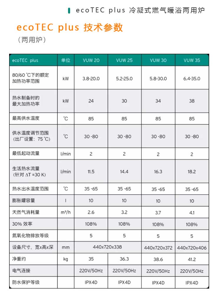 ecoTEC plus VUW 家用豪華型冷凝式燃氣暖浴兩用爐