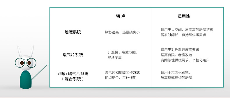 目前市場上供暖有散熱片系統(tǒng)和地暖系統(tǒng),散熱片系統(tǒng)使用方便,每組散熱片均設有控制閥門,控制方便,升溫快,并可以使用實木地板。
